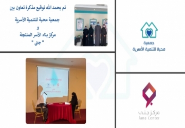 تم بحمد الله يوم الأثنين الموافق 31 يناير 2022 م توقيع مذكرة تعاون بين جمعية محبة للتنمية الأسرية و مركز بناء الأسر المنتجة (جنى ) @Jana_center تهدف إلى تمويل ودعم إطلاق مشاريع مستفيدات برنامج رائدات مبدعات الذي تقيمه الجمعية من خلال سلسلة من الدورات التأهيلية والتدريبية وورش العمل بهدف تمكين المرأة ..